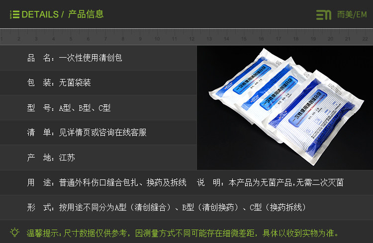Одноразовое использование дебридных упаковочных швейных мешков после операции, весло и корки, раны, стерильные кормления.
