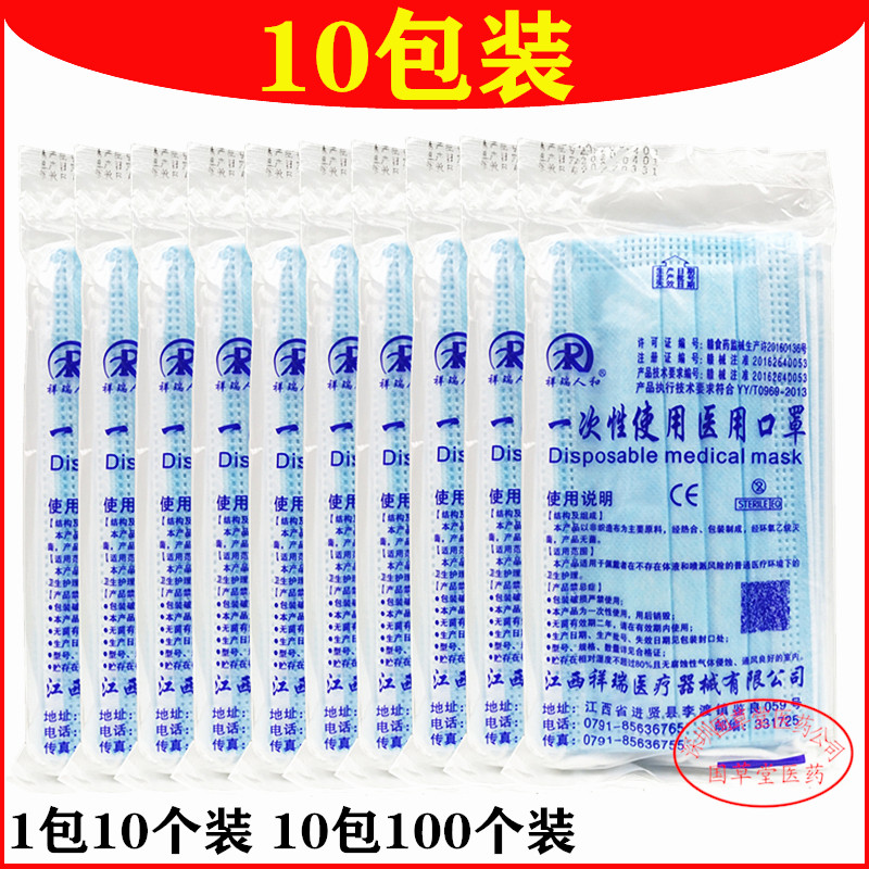 Xiangrui и 10 -тайм -медицинские маски 10/пакет Три -слоя стерилизации дезинфекция Медицинская степень маска