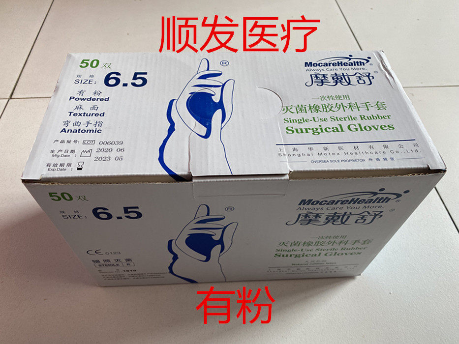 Шанхай Хуаксинмо Даишо Хирургические перчатки хирургические перчатки одноразовые стерилизации резиновые перчатки с 50 порошками