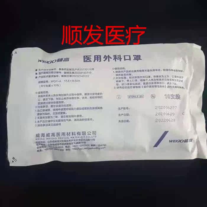 Шаньдун Вейгао Медицинская хирургическая маска одноразовая операционная операционная стерильная защита для взрослого взрослой маска Блю Бесплатная доставка