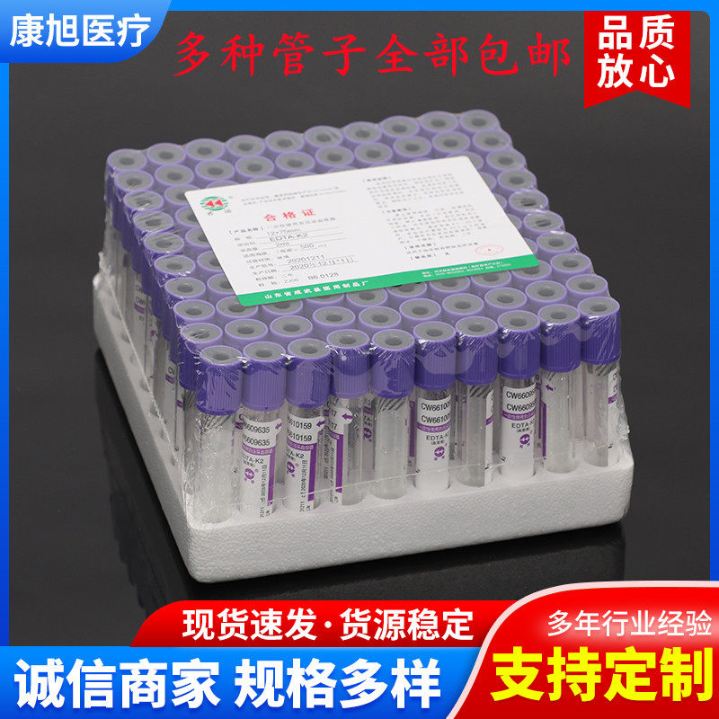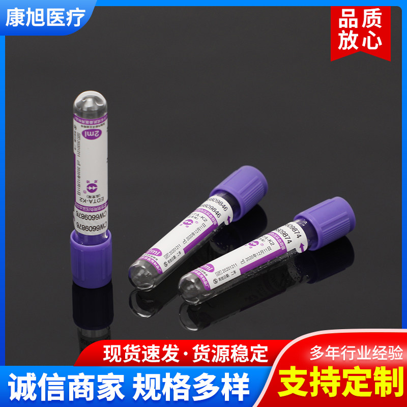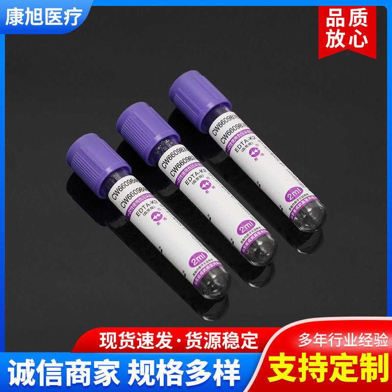 Регулярная регуляция крови ЭДТА-К2 Антикоагулянтная трубка 2 мл5 мл одноразовое отрицательное отрицательное давление Вакуумное пурпурное шапка