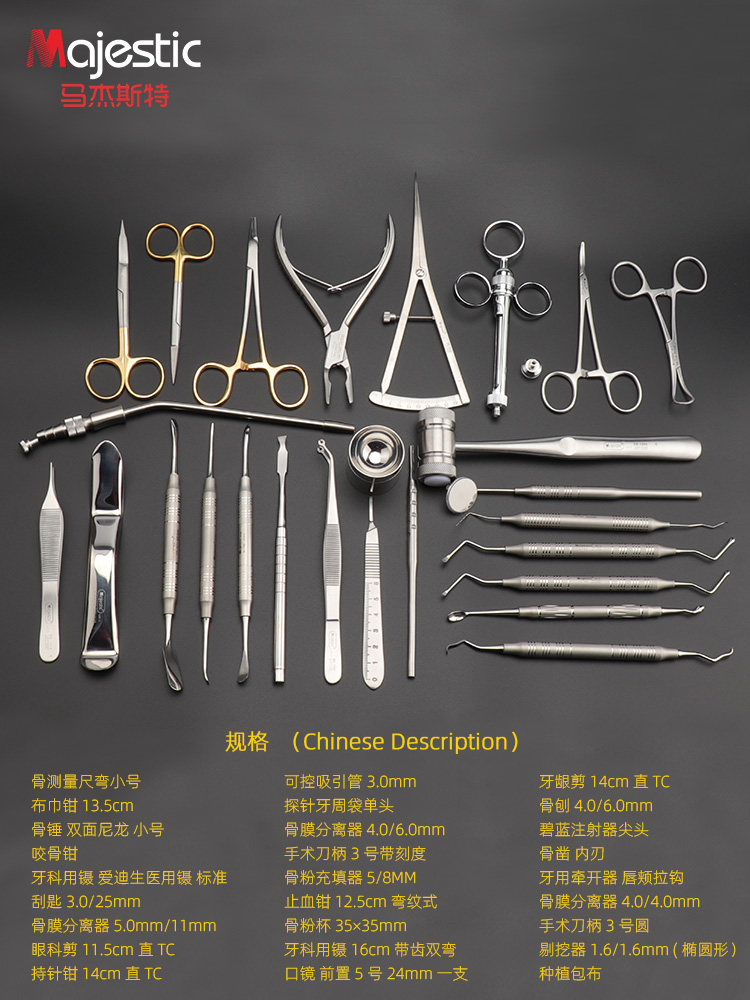 | Цвет: | Комплект, 26 шт, 1# Изогнутая маленькая линейка для измерения костей, 2 # щипцы для полотенец 13,5 см, 3# костяной молоток, двусторонний нейлон, маленький, 4 # щипцы, 5# Медицинский пинцет Эдисона, стандартный, 12,5 см, 6# кюретка 3,0/25 мм, 5.0mm, 11mm, 8# офтальмологические ножницы, 11,5 см, прямые, TC, 9# игольные щипцы, прямые 14 см, TC, 10 # управляемая всасывающая трубка 3,0 мм, 11# зонд пародонтального кармана с одной головкой, 12# Сепаратор надкостницы 4,0/6,0 мм, 13# Наполнитель из костной муки 5/8 мм, 14# Кровоостанавливающие щипцы изогнутого типа длиной 12,5 см., 15# чашка для костной муки 35х35мм, 16# строгальный станок для костей 4,0/6,0 мм, 17# синий наконечник шприца, 18# внутреннее лезвие остеотома, 19# Сепаратор надкостницы 4,0/4,0 мм, 20 # стоматологический ретрактор для губ и щек, 21# Ручка скальпеля №3 круглая, 22 # посадочная упаковочная ткань |