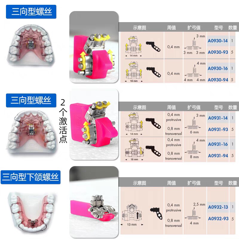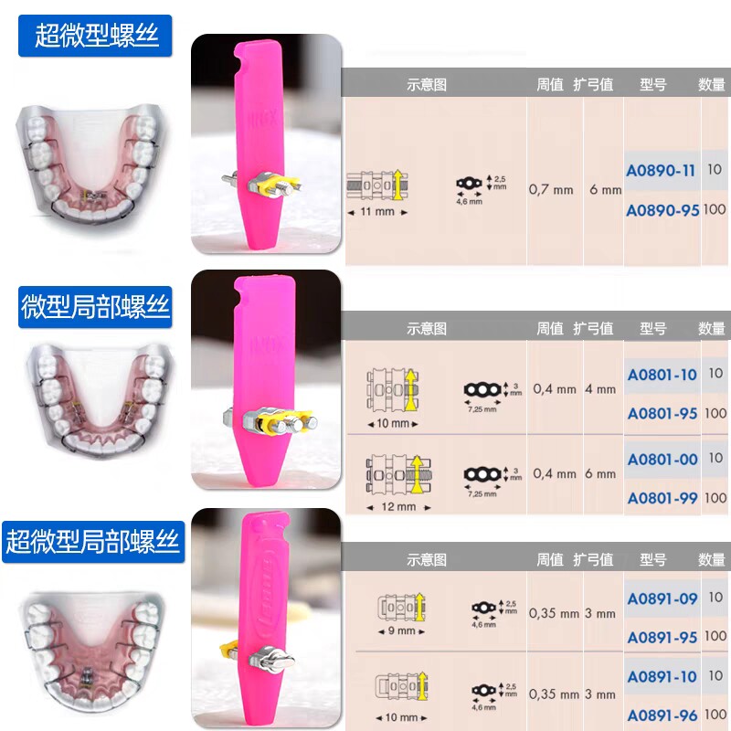 Расширение зубного спирали, расширение лиона, винт -винт ортодонтический пух