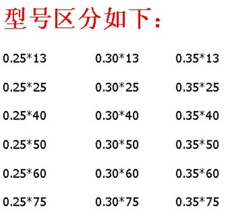 0.35*25 (1 дюйм) 0.35*40   (1 -INCH половина) 0.35*50   (2 дюйма) )
