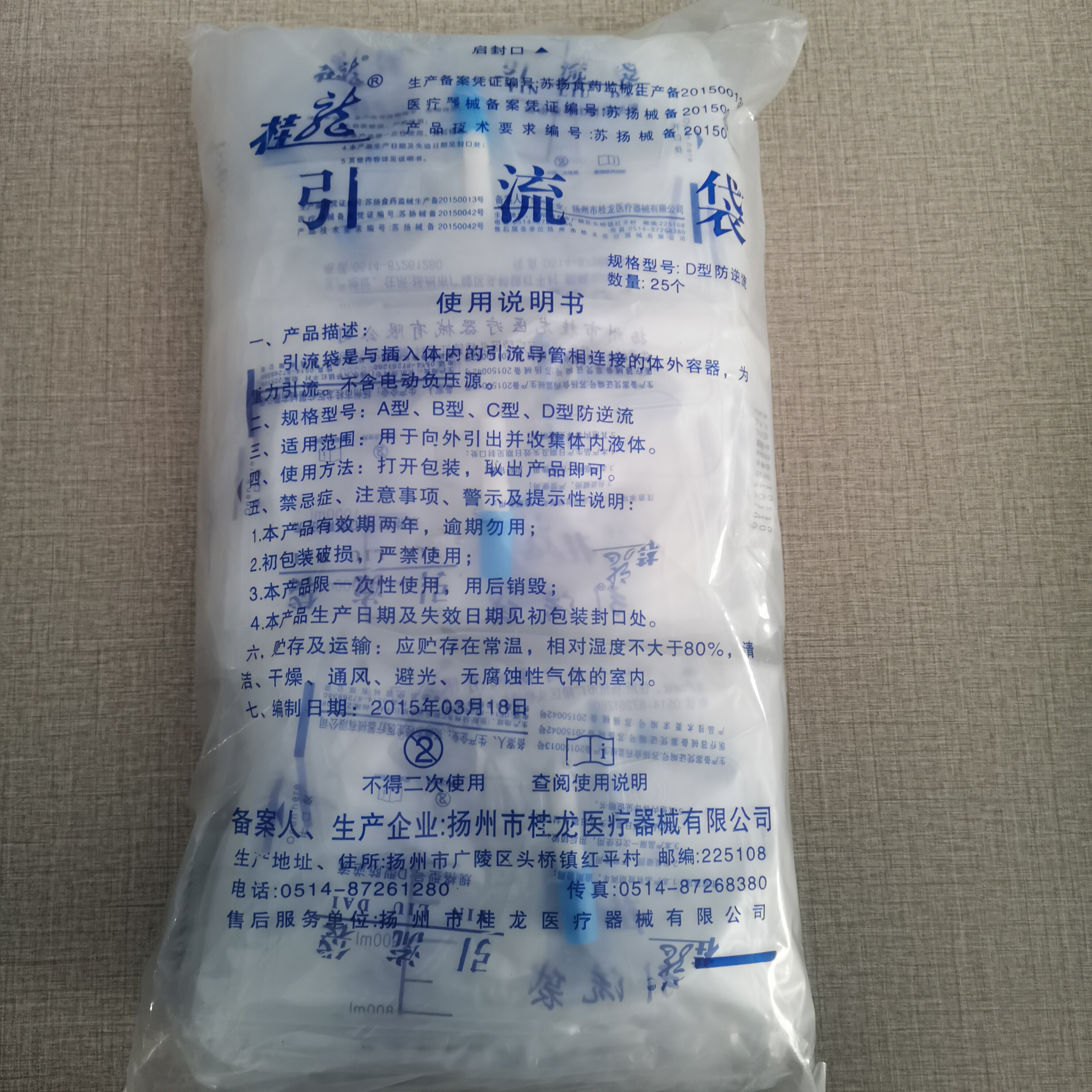 D -тип анти -сосудистого использования дренажных мешков одновременно
