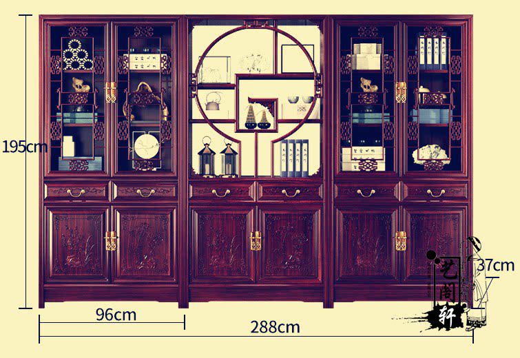 Китайский стиль полная -заливая деревянная книга с дверной резной канцелярией из красного дерева кабинета кабинета дзен деревянный книжный шкаф комбинированный перегород