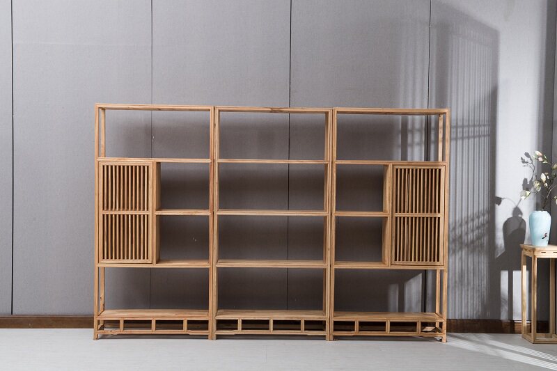 Резиновый деревянный книжный шкаф Полный твердый деревянный переплет простые новые китайские двойные шкафы Три шкафа Случайное сочетание цвета бревна