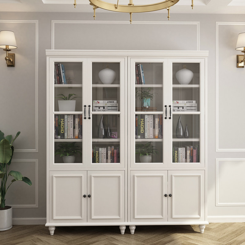 Книжный шкаф из натурального дерева, книжная полка, стеклянная коробочка для хранения, мебель, в американском стиле