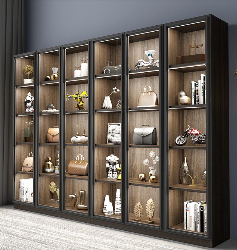 Японский стенд, стеклянный книжный шкаф, современный и минималистичный аксессуар, светодиодная лента с подсветкой, делается под заказ