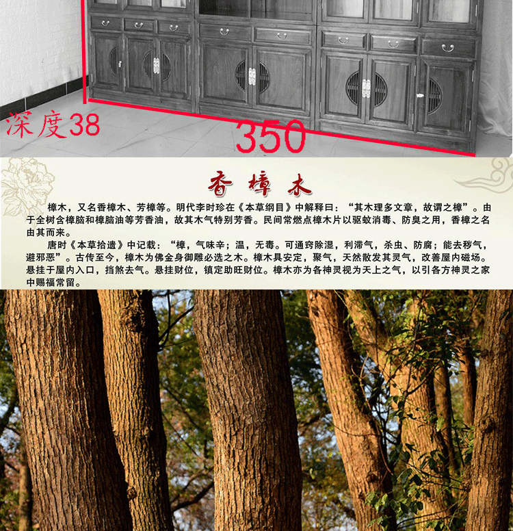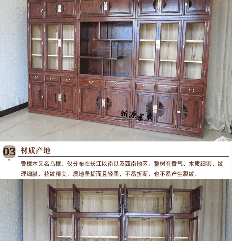 Камфора дерево полная стена Комбинированный книжный шкаф в шкафу документов плюс топ с твердым деревом китайский книжный шкаф с бог -рамкой Джингху Хранилище