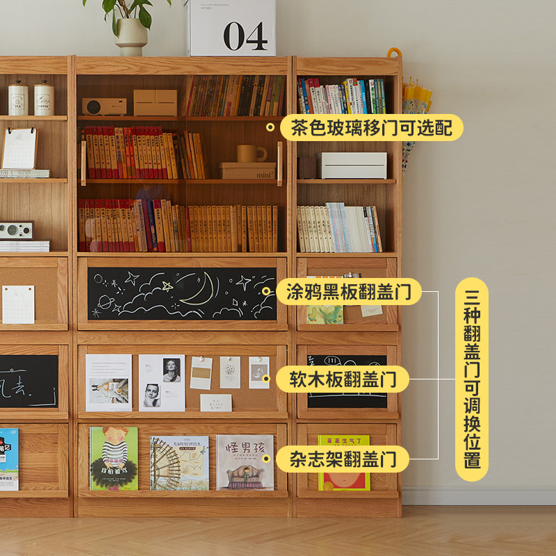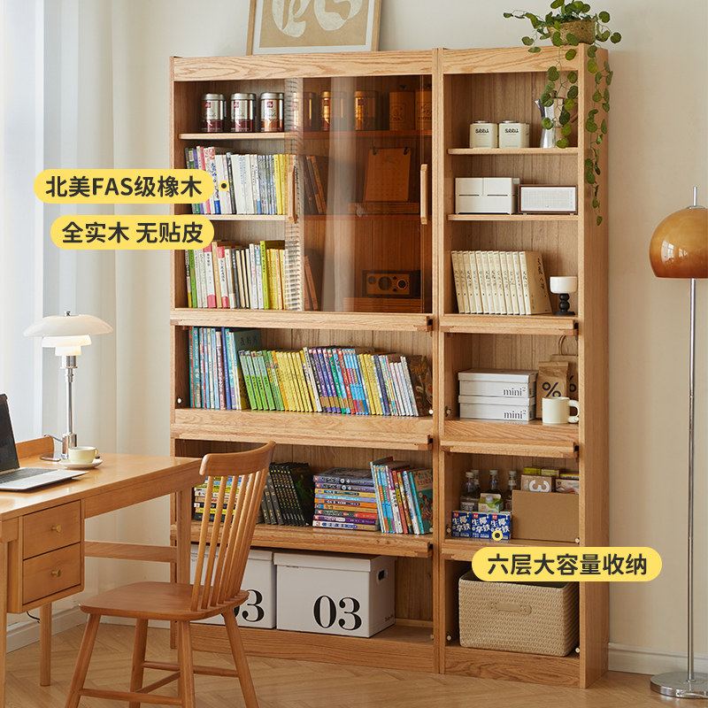 Стеклянный книжный шкаф из натурального дерева, книжная полка, японский дубовый стенд