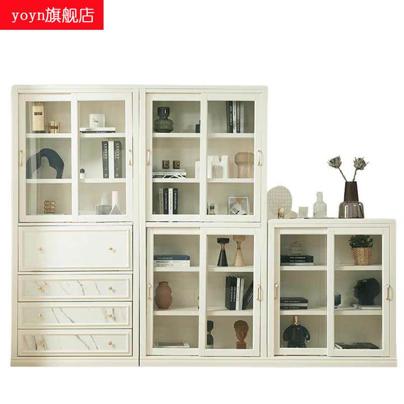 Белый книжный шкаф из натурального дерева, стеклянный стенд, книжная полка, система хранения