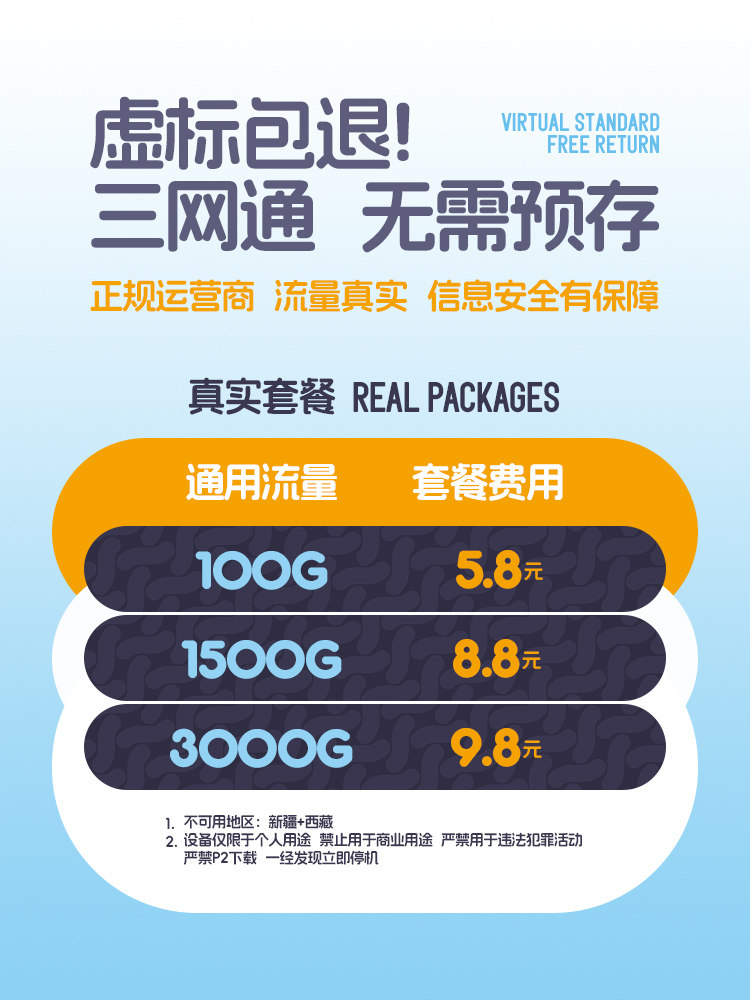 | Пакет данных: | 10 г/месяц*1 месяц, 100 г/месяц*1 месяц, 300 г/месяц*1 месяц, 1500 г/месяц*1 месяц, 3000 г/месяц*1 месяц |