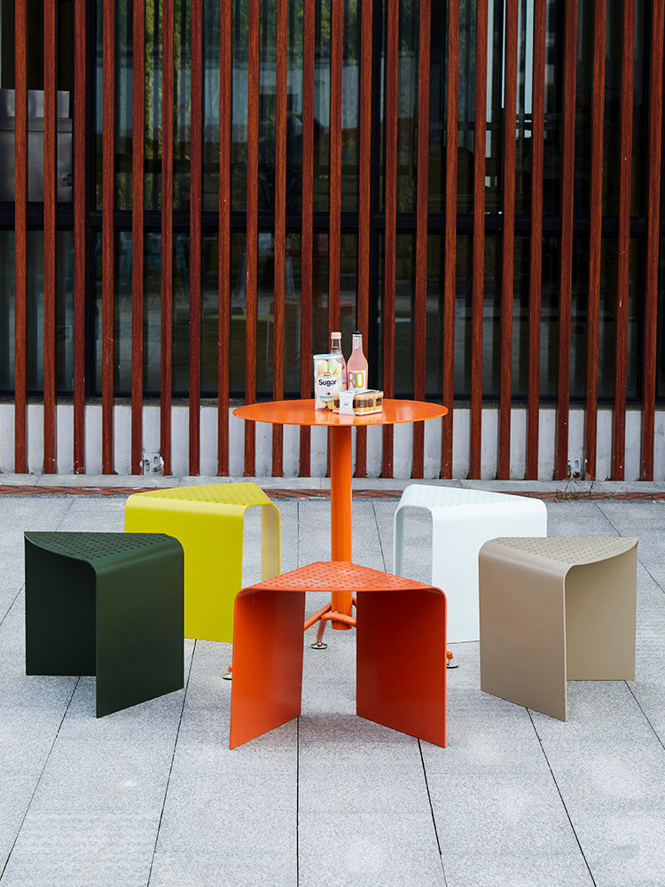 Алюминиевый сплав сплав с сплавами на открытом воздухе сидящий табурет Балкон. Чистый красный табурет и дышащая северная Европа Минималистский алюминиевый сплав
