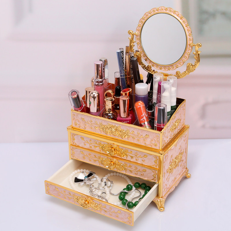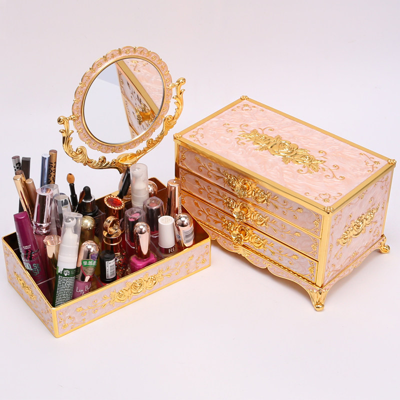Косметическая коробка для хранения, настольная помада для ухода за кожей, серьги, коробка для косметики, европейский стиль