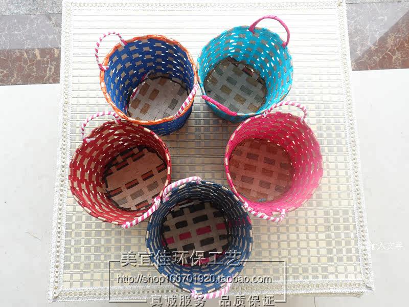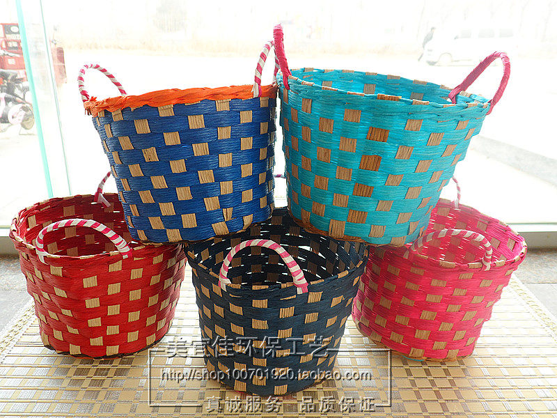 Чистый натуральный зеленый экологически чистый, приготовленный ручной цветовой веревочной хранение небольшие корзины и небольшие объекты. Маленькие корзины. Цвет случайный.