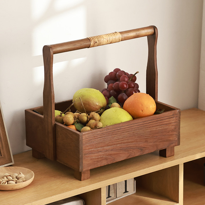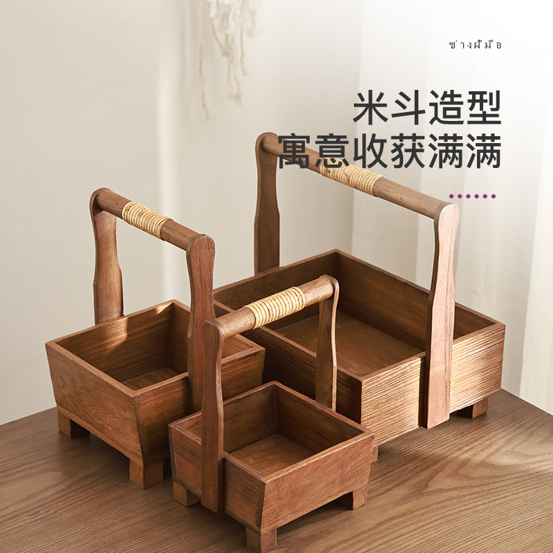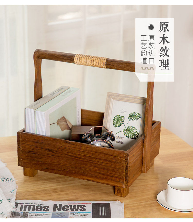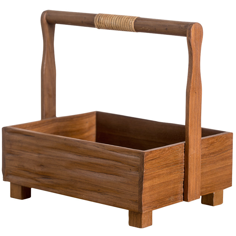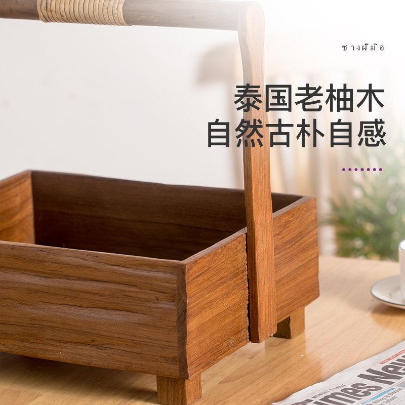 Деревянная портативная корзина для хранения из натурального дерева, Таиланд