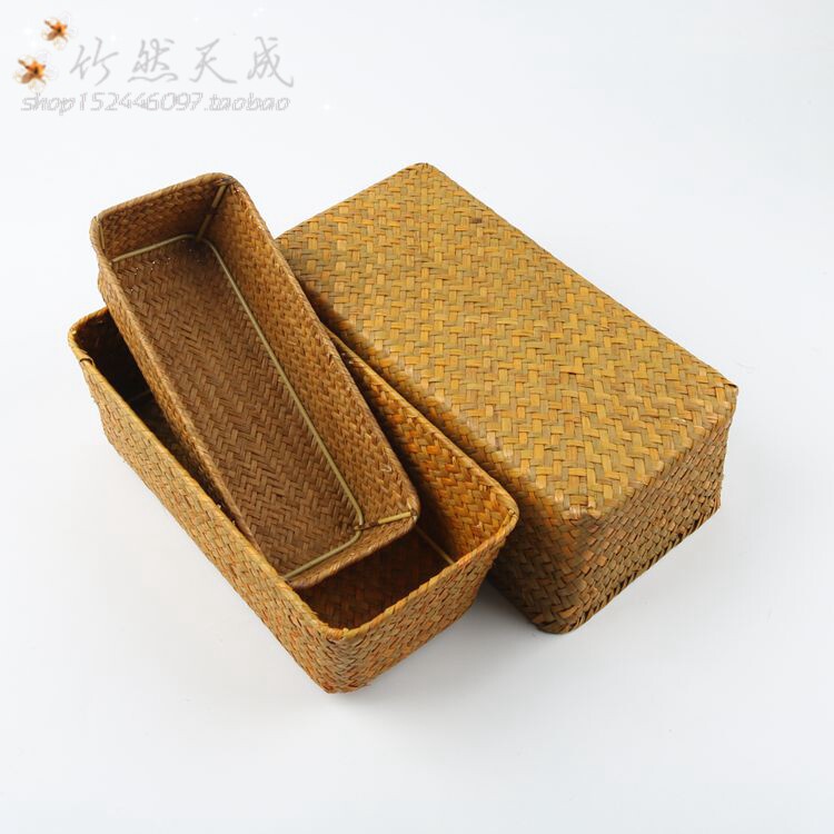 Соломенная маленькая коробка для хранения, корзина для хранения, круглый чайный сервиз с аксессуарами, квадратная система хранения, DIY