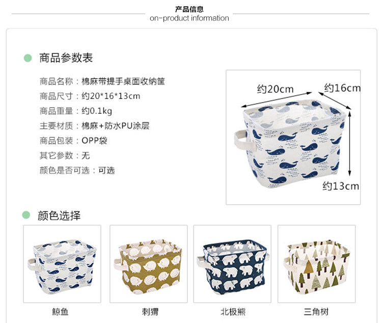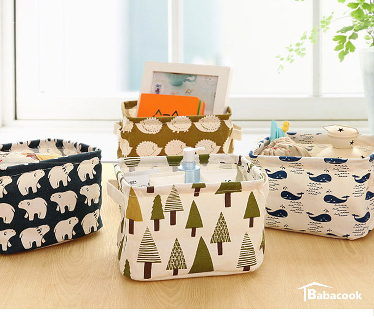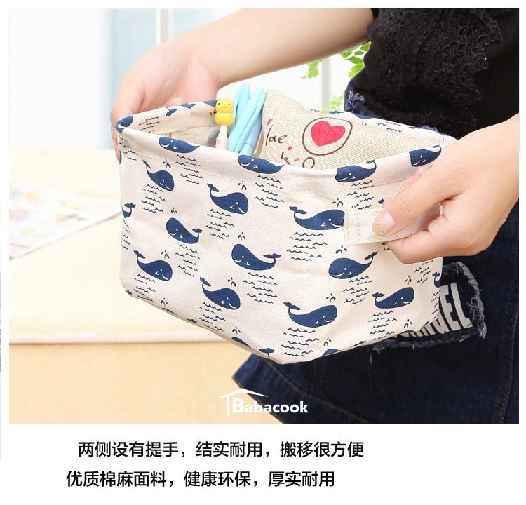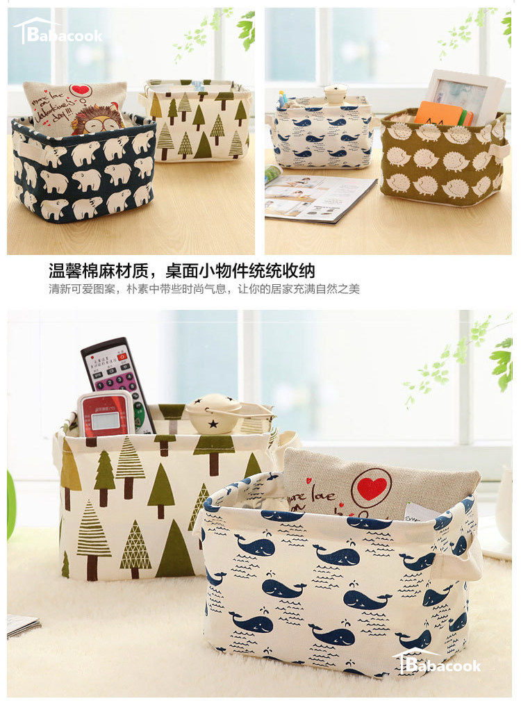 Мультяшная настольная ручка, корзина для хранения, ткань, коробочка для хранения, система хранения, из хлопка и льна