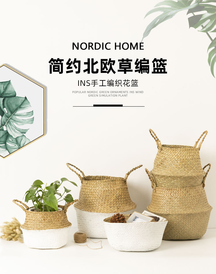 Соломенный плетеный цветочный горшок, система хранения для гостиной, корзина для белья, портативная корзина для хранения