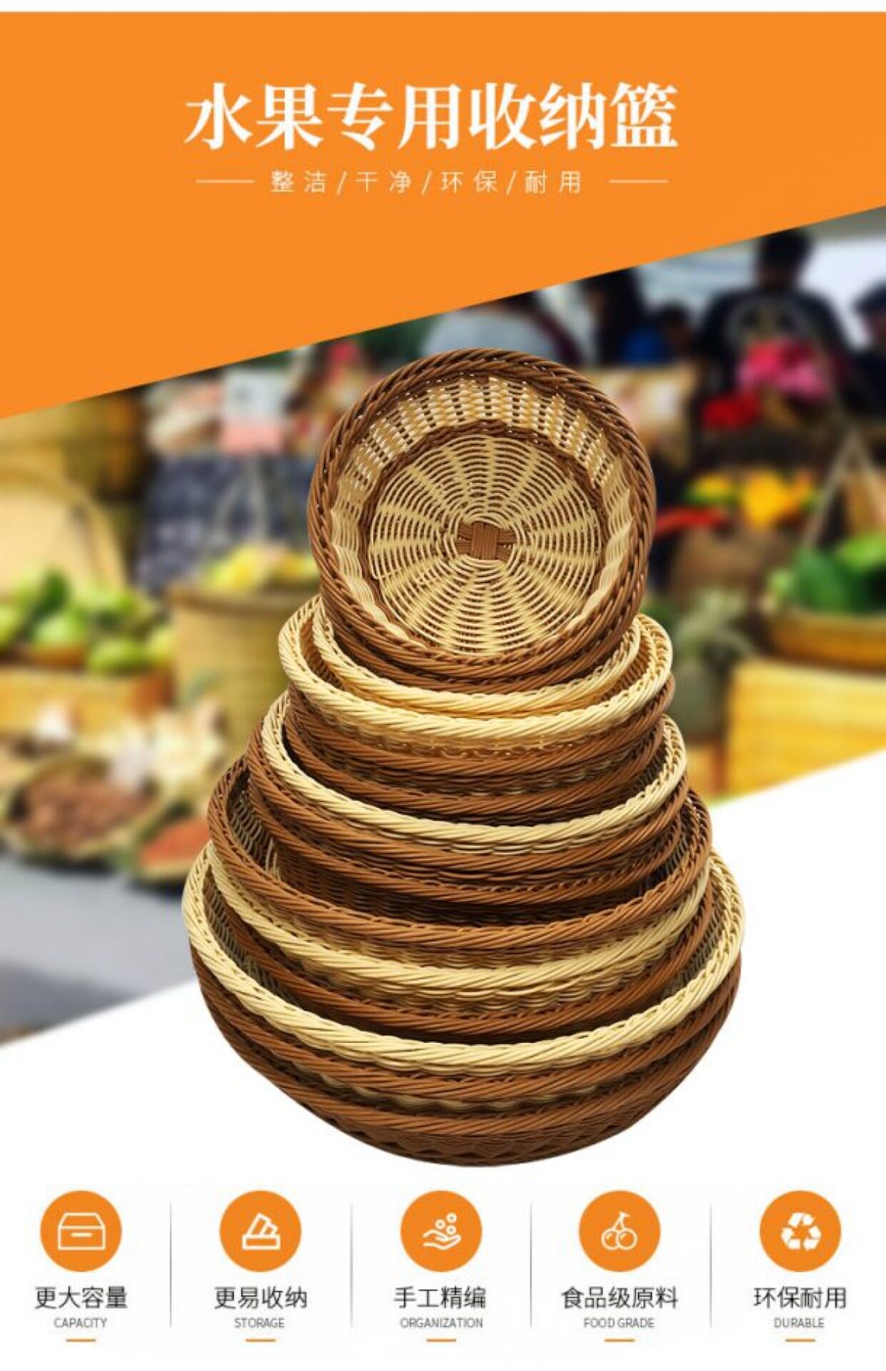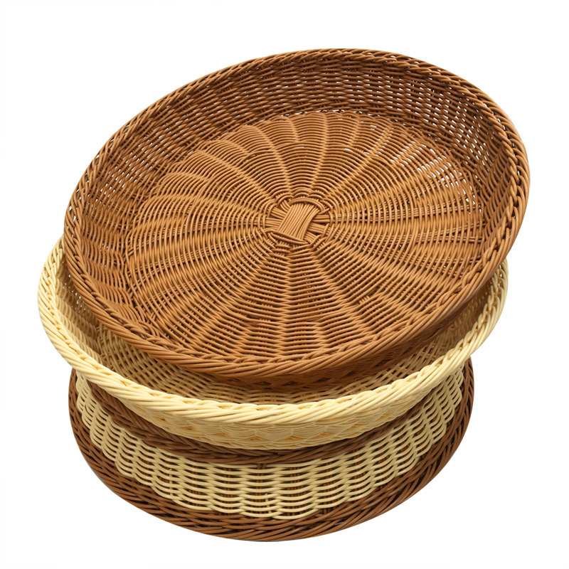 Пластиковая плетеная круглая корзина для хранения, хлеб