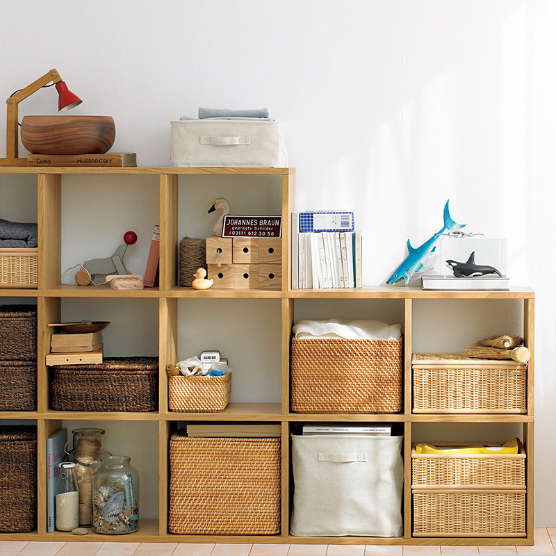 Мудзи муджи перекрываю масляную ручку коричневого листа прямоугольной корзины/маленькая