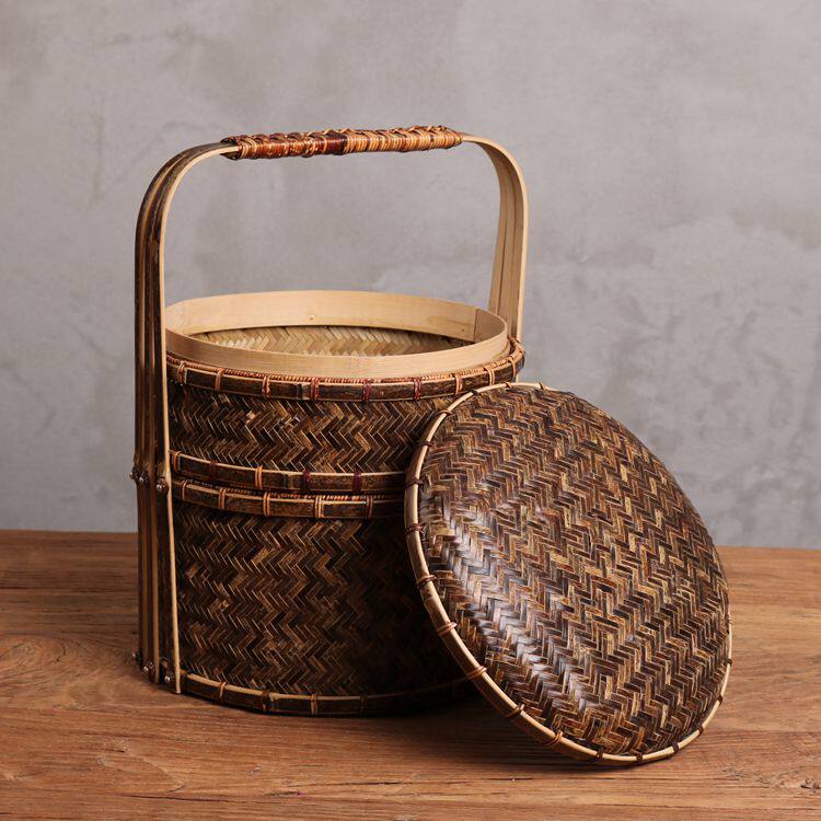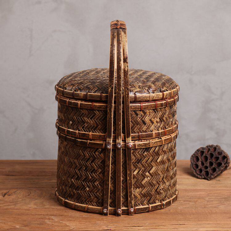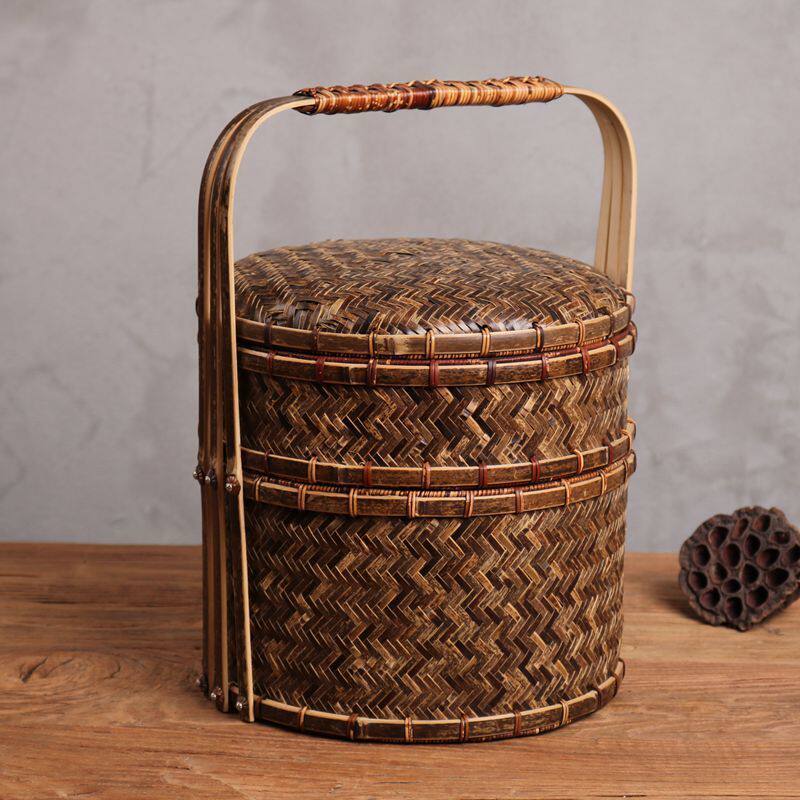 Ретро портативная двухэтажная корзина, подарочная коробка, банка для хранения, чайный сервиз, коробка для хранения, DIY