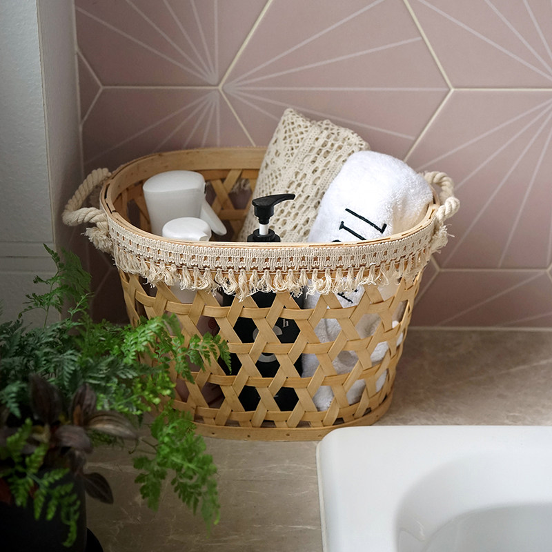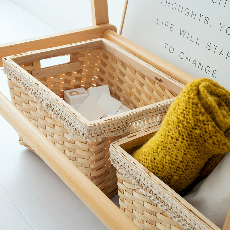 Бежевая плетеная система хранения, скандинавский стиль, стиль бохо