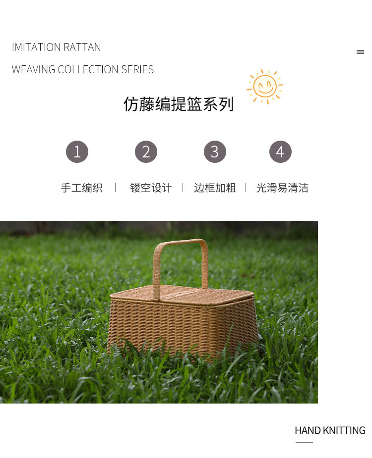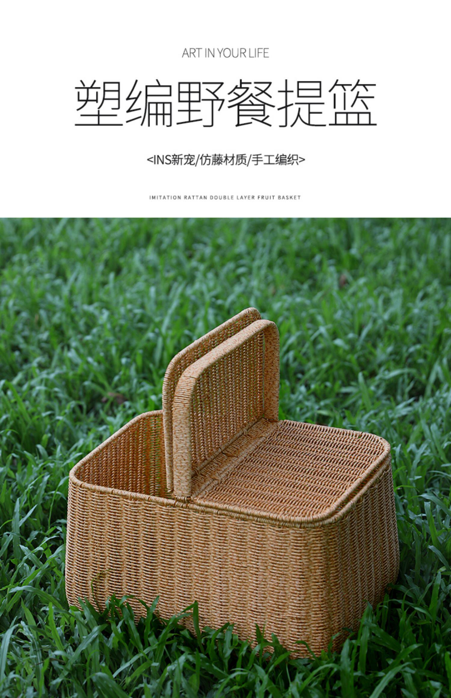 桂味源 Имитация виноградной лозы Редакция для пикника на открытом воздухе с корзиной для корзины корзины для хранения корзины фрукты Большой размер большой