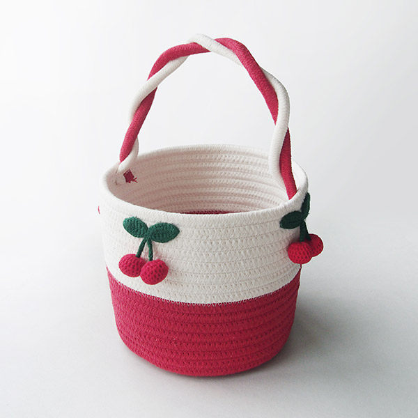 Экспортный список, красно-белая блокировка цвета Симпатичная трехмерная вишня ручная ручная ватная веревка для хранения круглой корзины