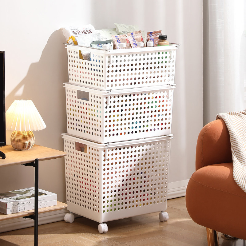 - [Очень большой размер/тележка на колесиках/штабелируемая/отверстия для подвешивания игрушек] серая корзина для хранения