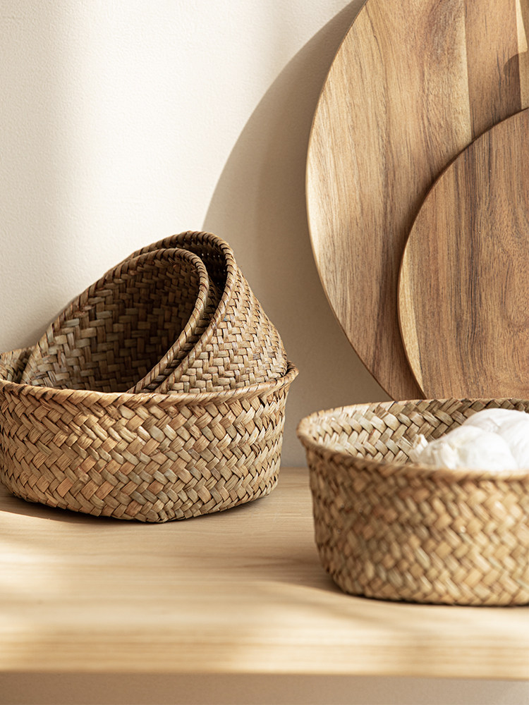 Соломенная плетеная корзина для хранения, маленькая круглая система хранения, настольная коробочка для хранения