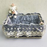 Ткань, замшевая корзина для хранения, маленькая настольная прямоугольная система хранения, с медвежатами