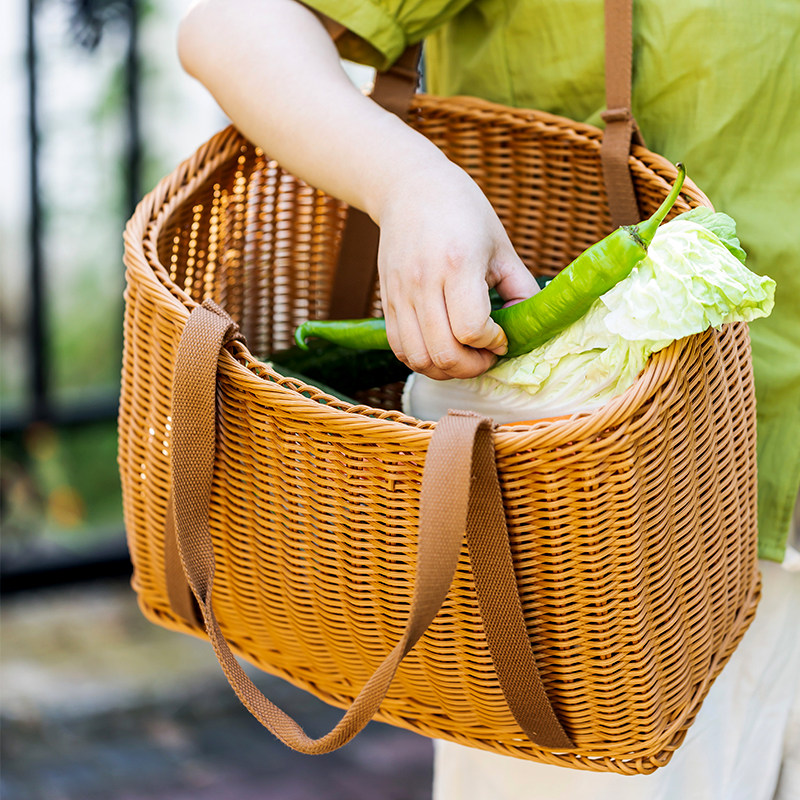 Портативная корзина для пикника из искусственного ротанга, сумка, корзина для покупок, корзина для покупок, корзина для сбора синих фруктов, корзина для хранения