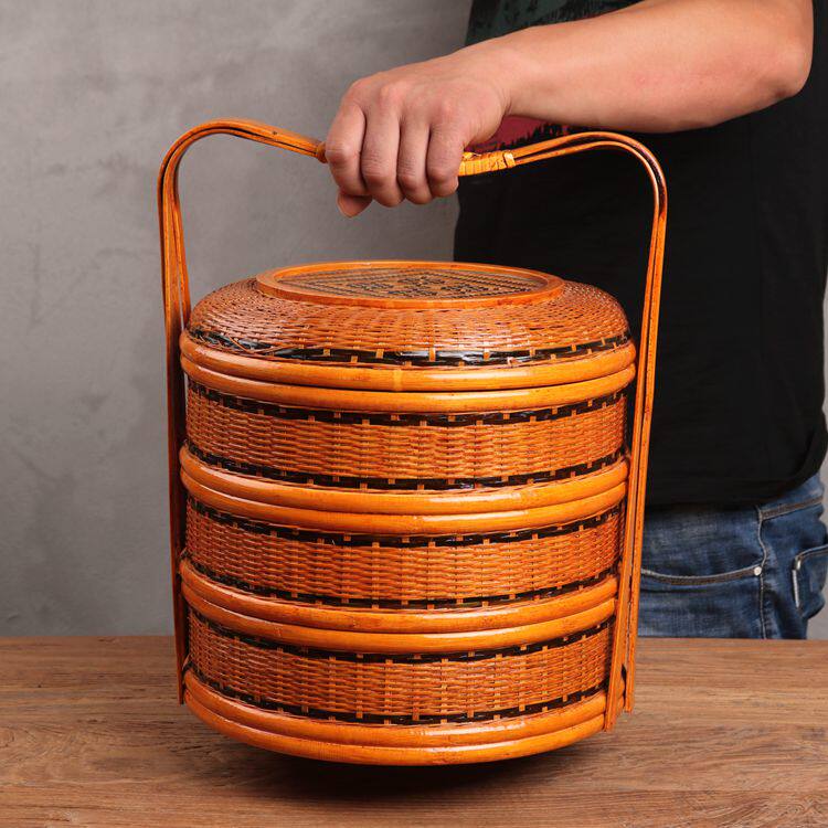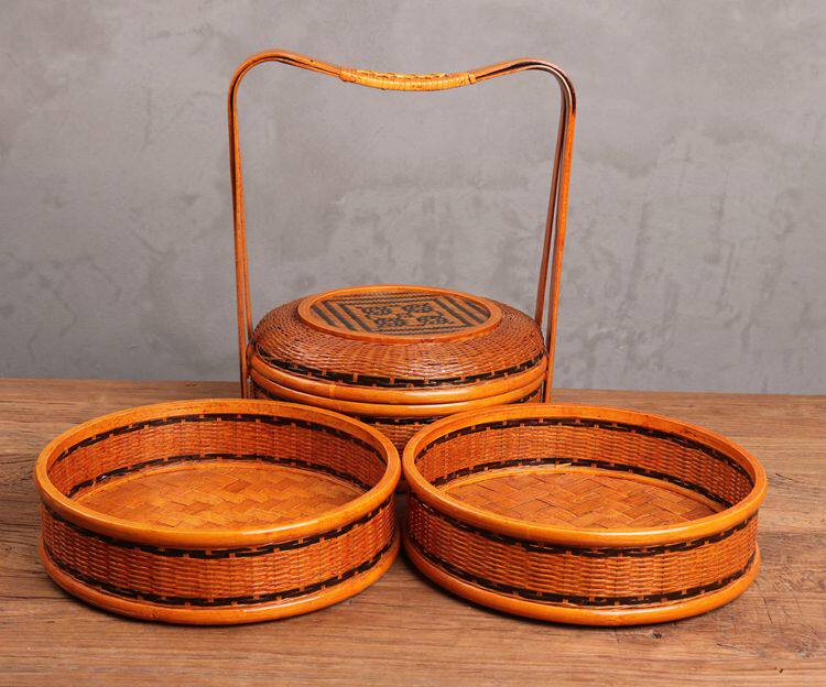 Три -слоя бамбуковая обеденная корзина для корзины для корзины для корзины для корзины для корзины для пищевой коробки ретро.