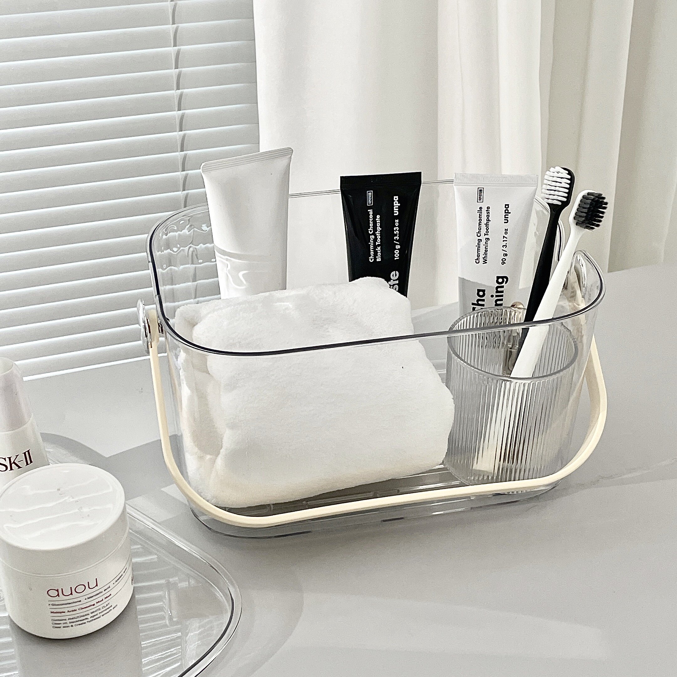 Ручная корзина для ванны прозрачна с ванной комнатой для ванной комнаты для ванной комнаты для ванной комнаты для ванной комнаты водонепроницаемая корзина для хранения