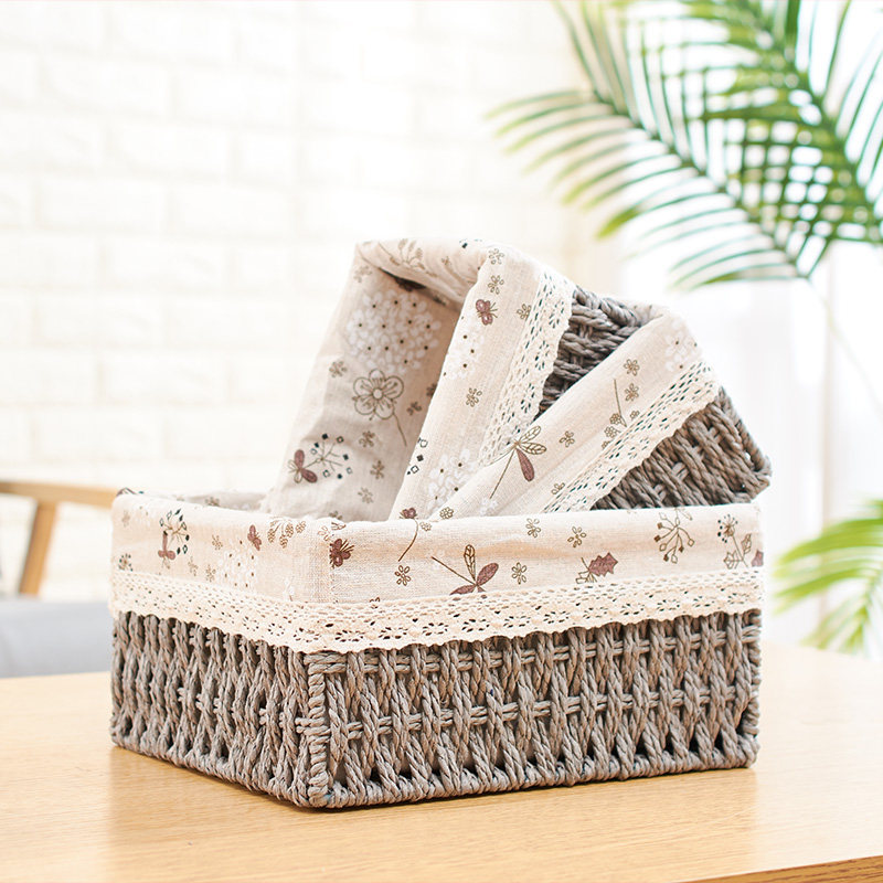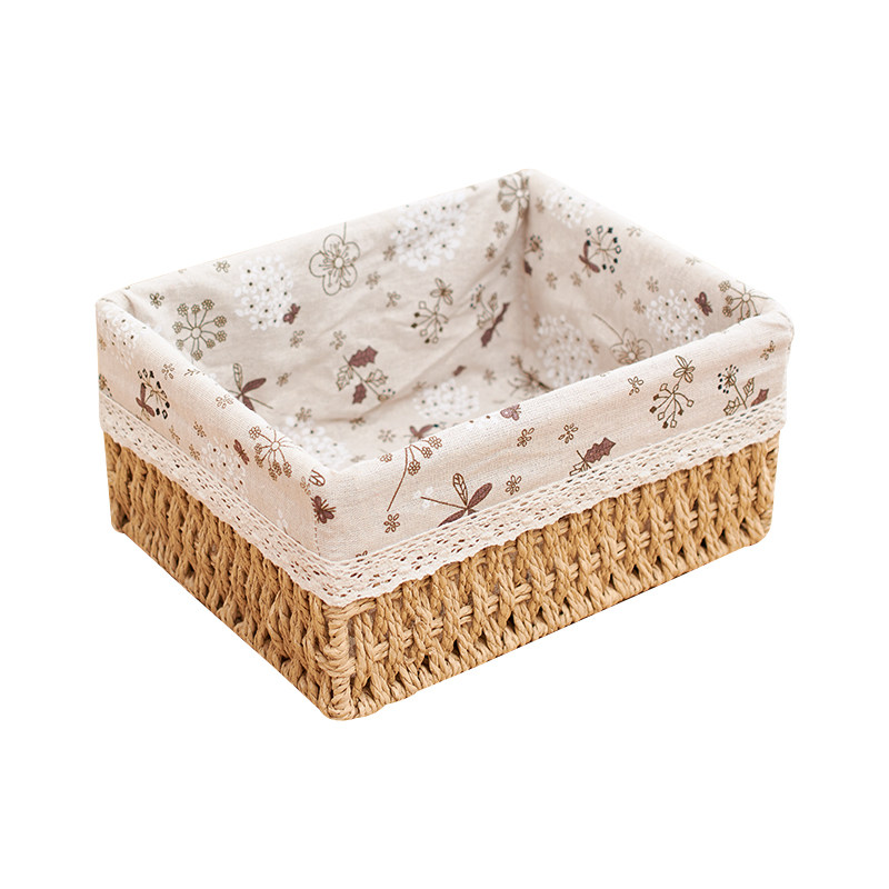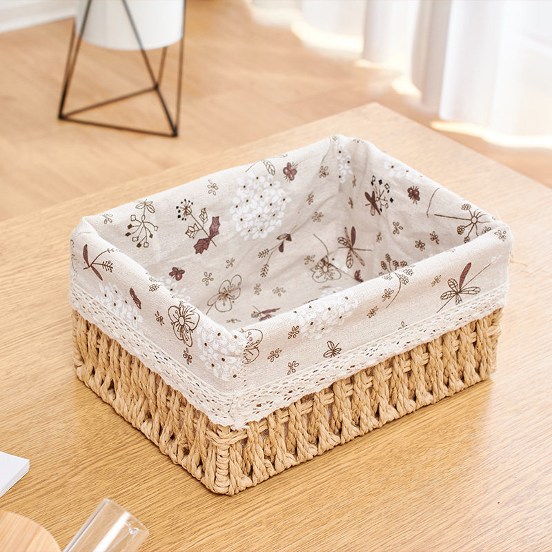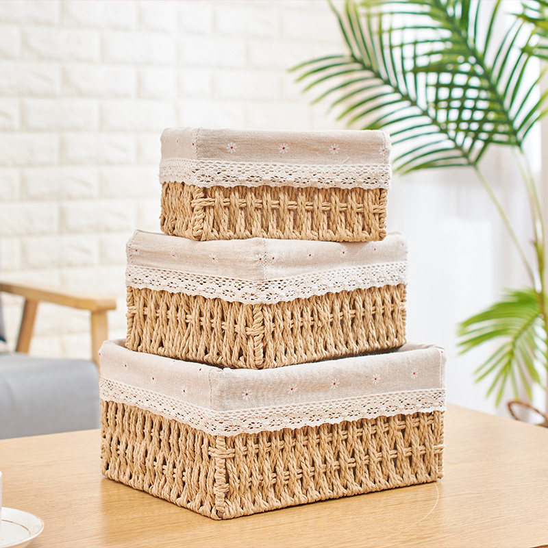 Плетеная настольная корзина для хранения, система хранения, ткань, косметическая коробка для хранения, соломенный ящик для хранения