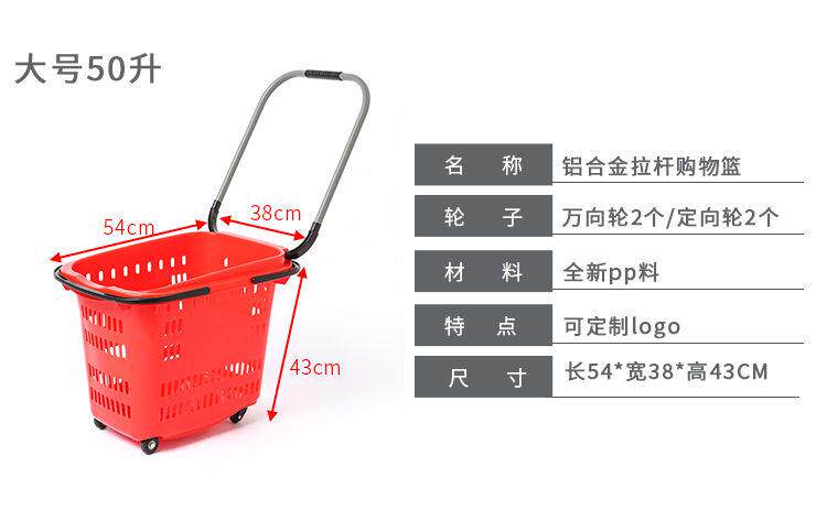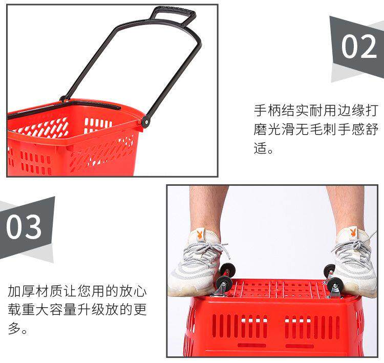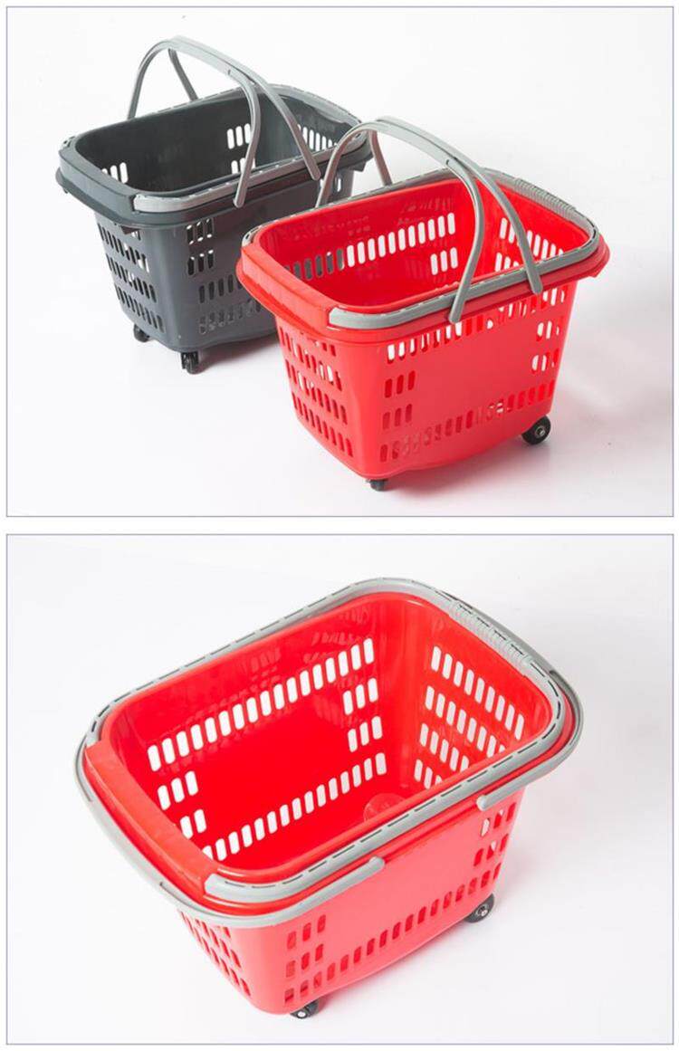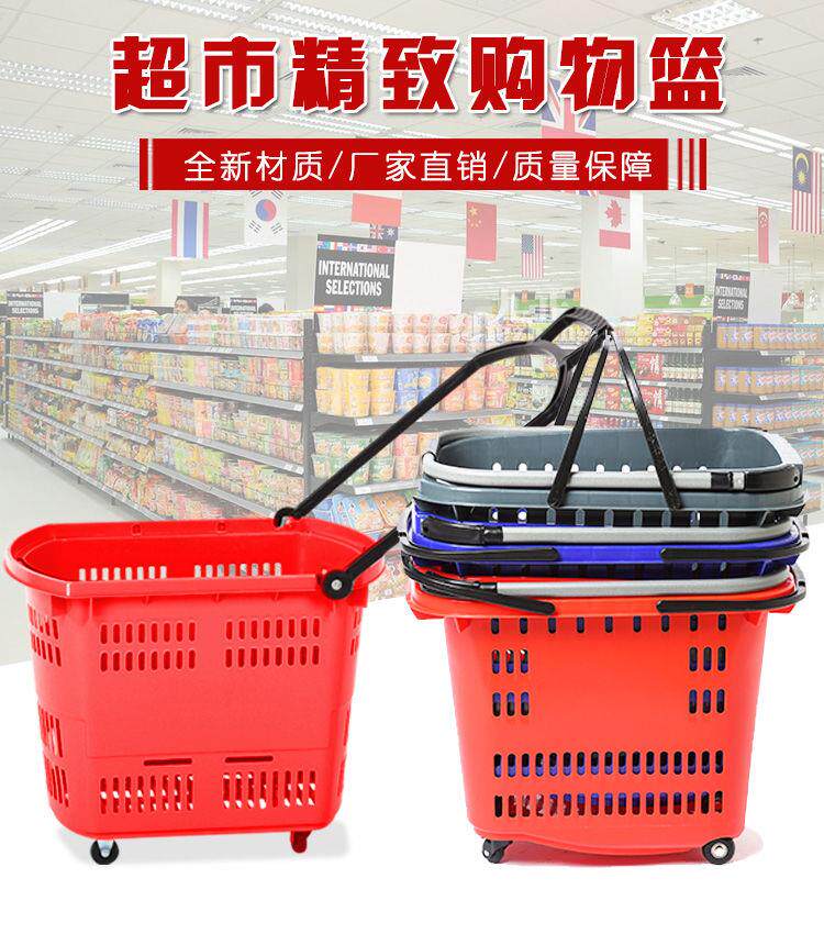 Супермаркет для торговых стержней с колесами с колесами перевозки корзины для корзины с закусками.