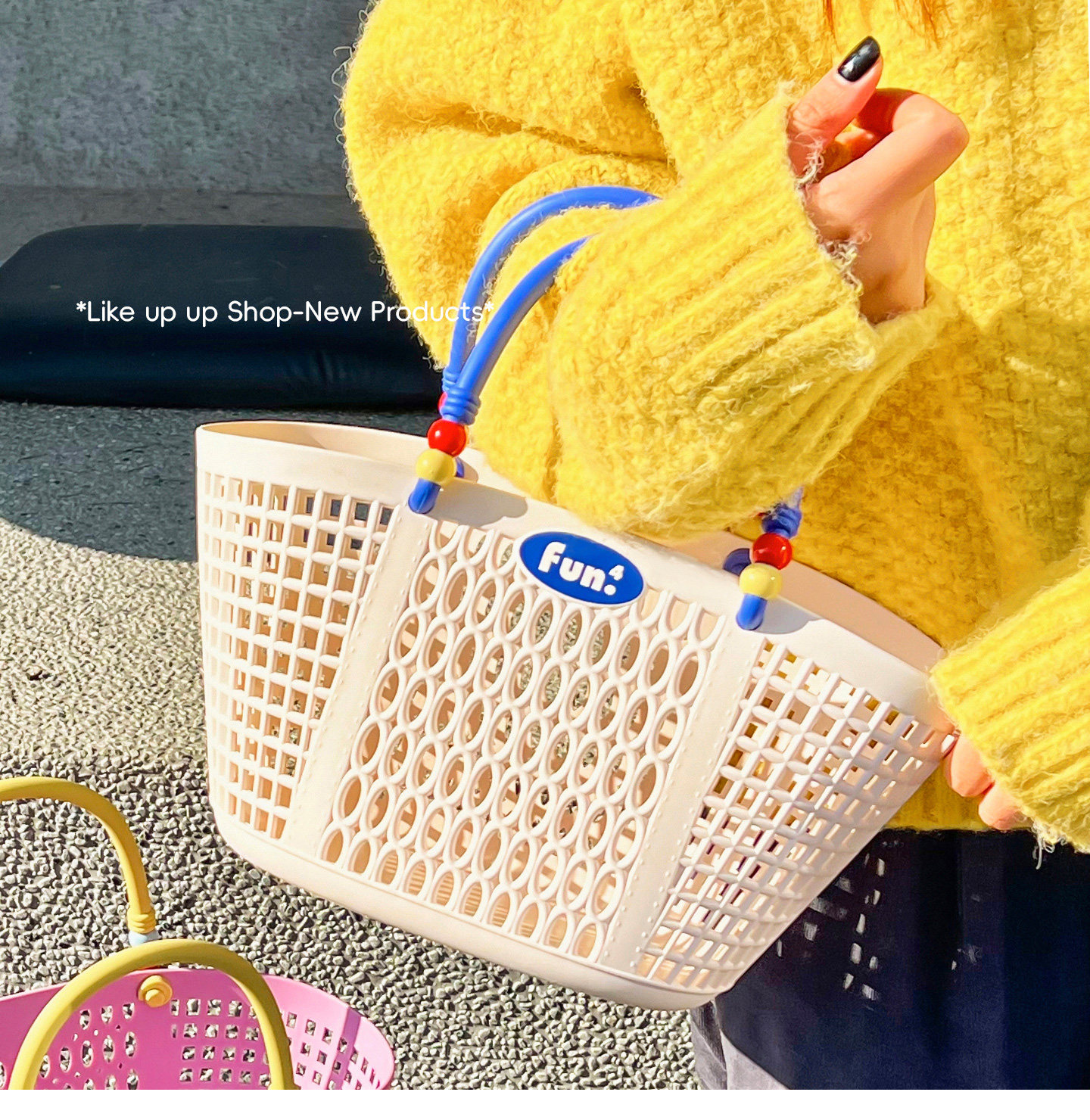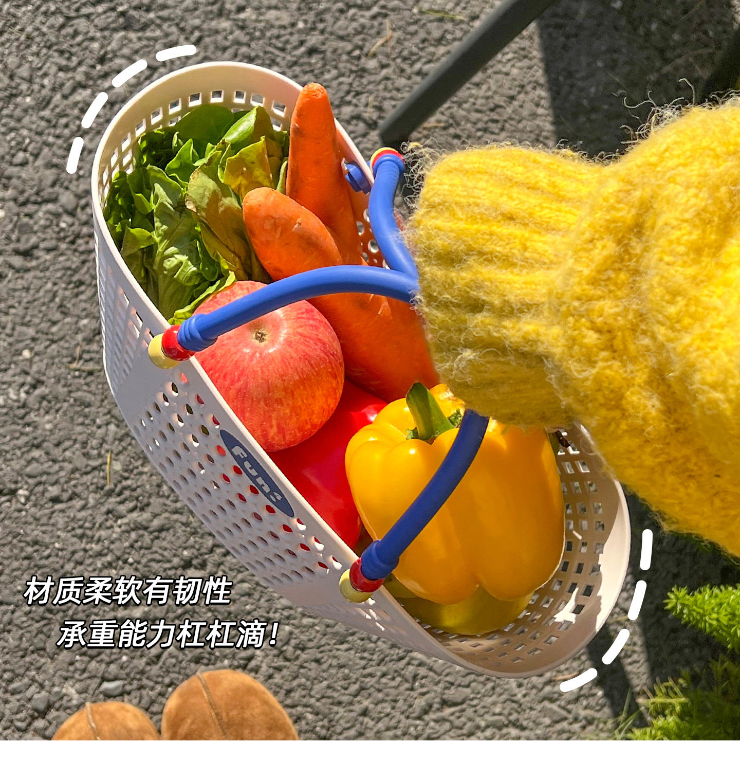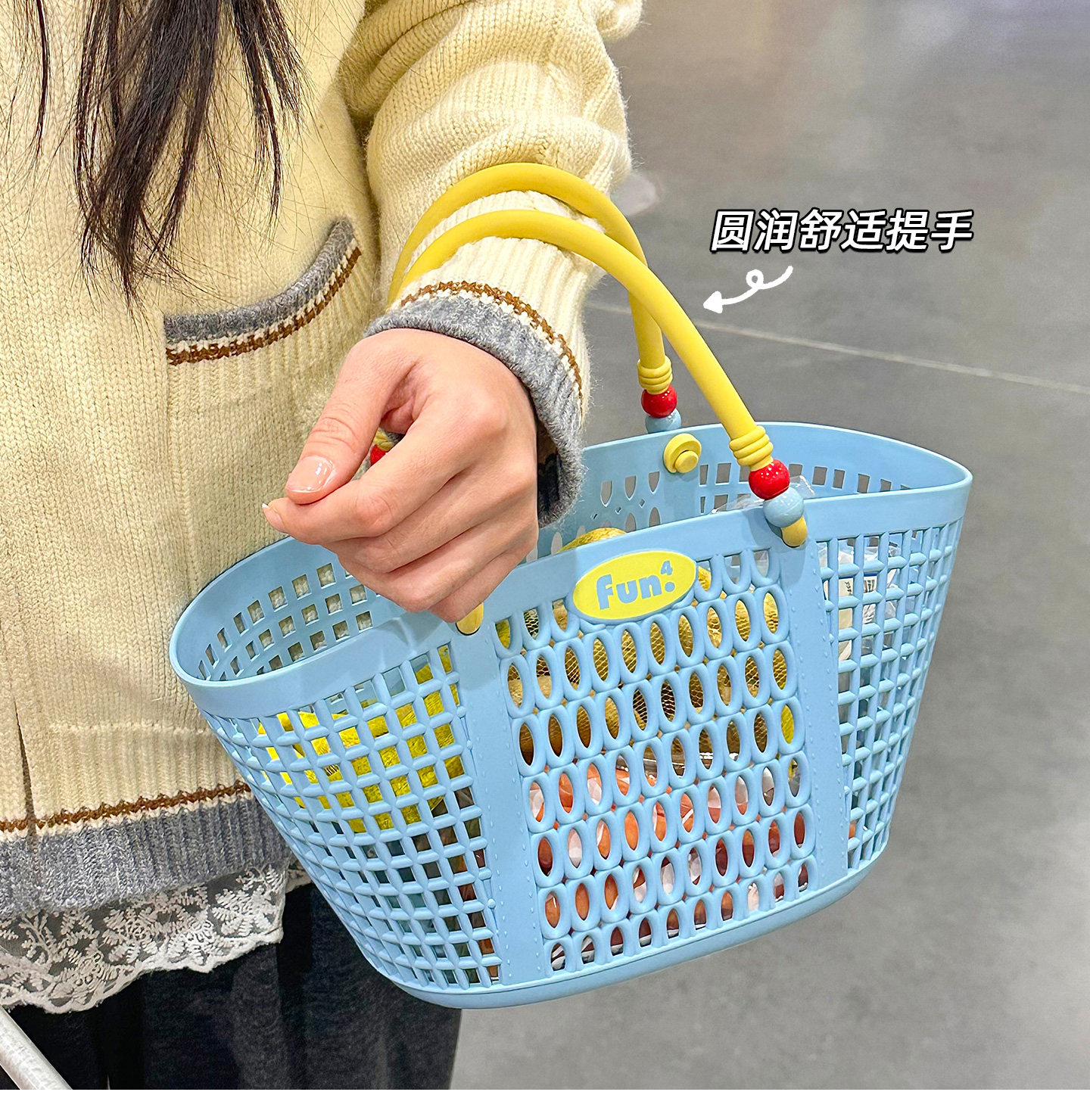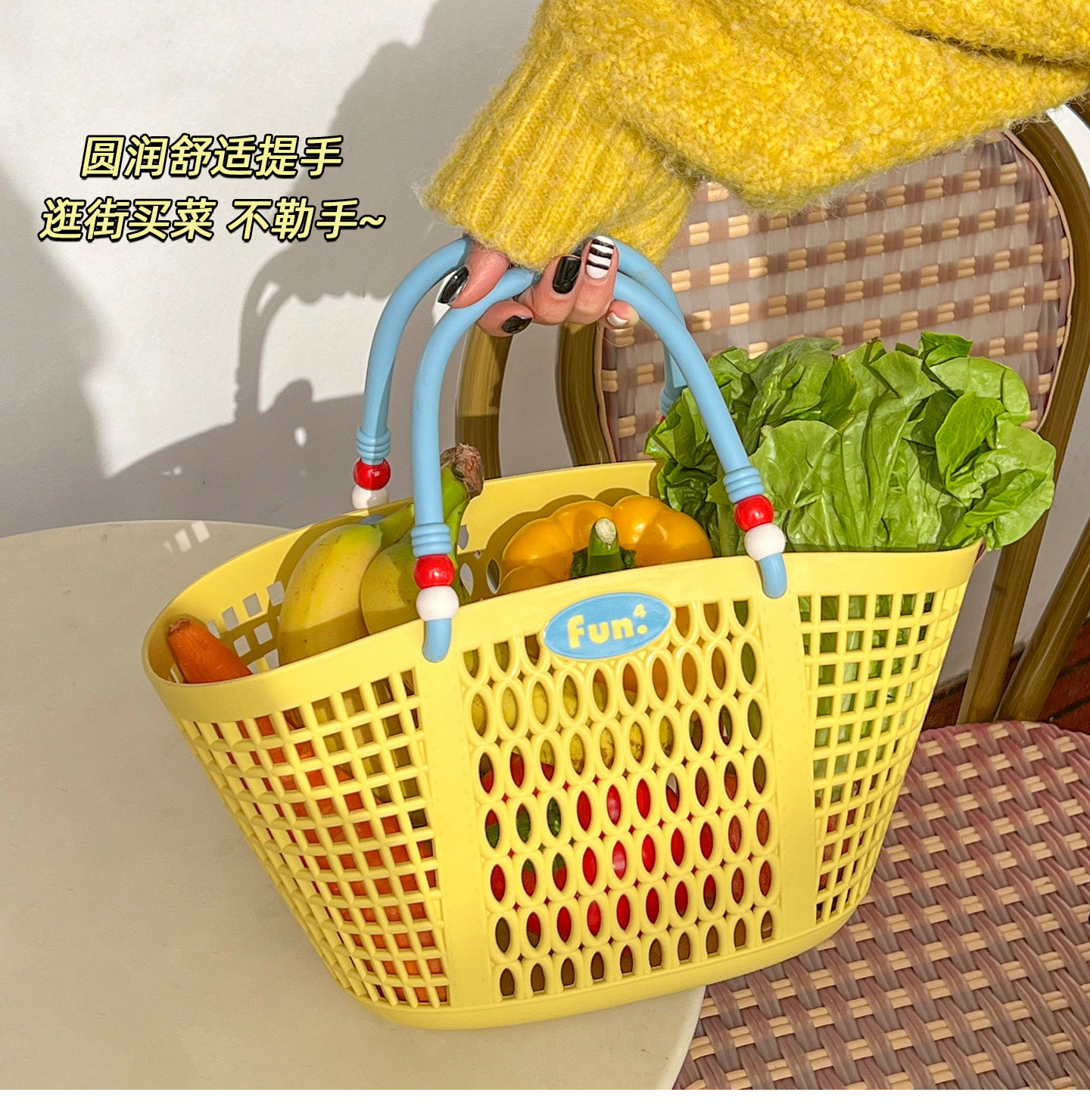 Ins полая макаронная цветная тканая портативная корзина для фруктов и овощей, стиль отдыха для пикника, повседневная пляжная ручная переноска, поездка на работу