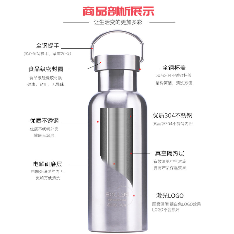Стакан из нержавеющей стали, чайник, термос с гравюрой, нержавеющая сталь AISI 304, защита при падении