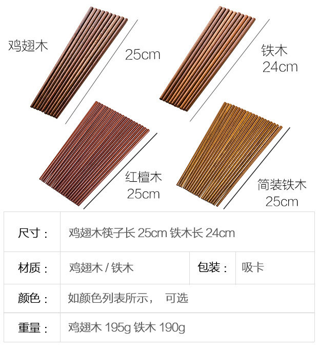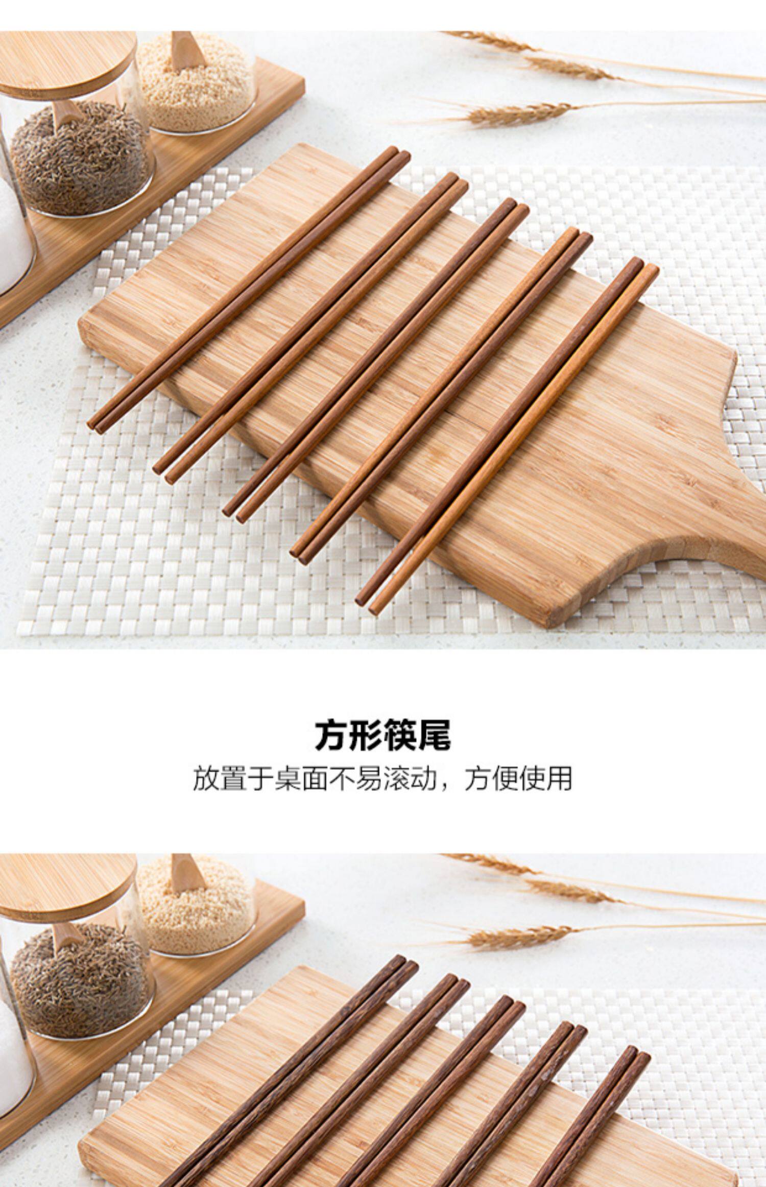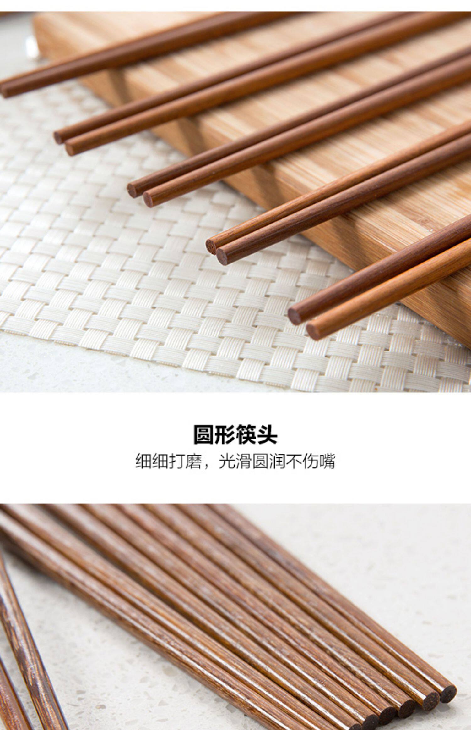 Семейные нескользящие палочки для еды для домашнего использования, комплект из натурального дерева, посуда, китайский стиль