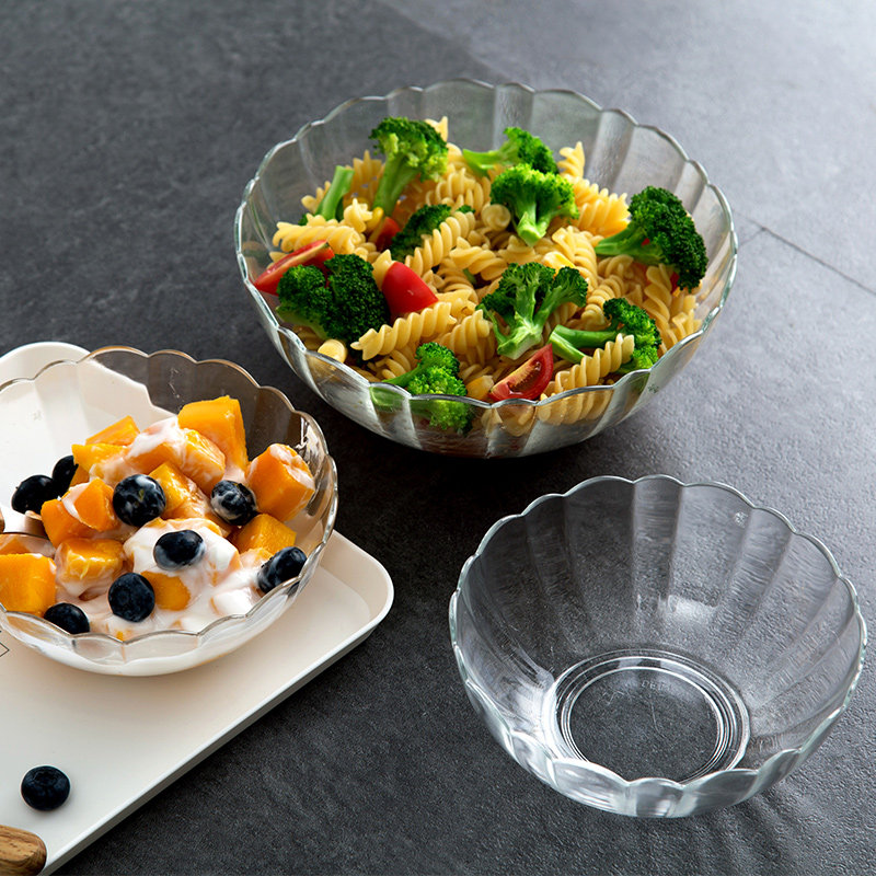 Дома в домашней прозрачной стеклянной десертной салат -чаше, миска с домашней посудой, Студенческая мгновенная миска с лапшой миски для лапши