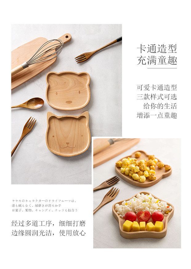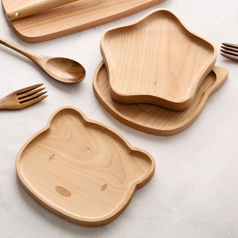 Мультяшная деревянная чайная чашка, обеденная тарелка для домашнего использования, большая посуда из натурального дерева
