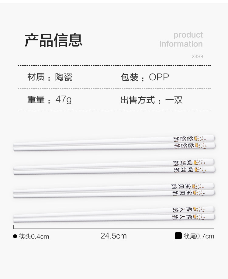 Домашний дом китайский чистый цвет керамические палочки для еды, нельесолома высокая температура, горячие палочки для горшка, один человек, один человек, 24,5 см, отец, папа