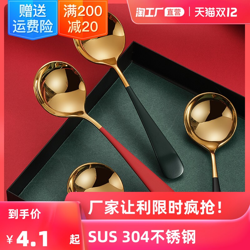 - 304 Круглая ложка из нержавеющей стали (порошковое золото) 2 установка