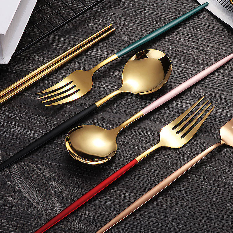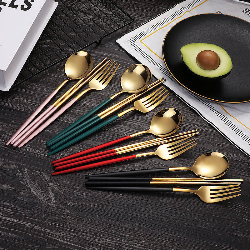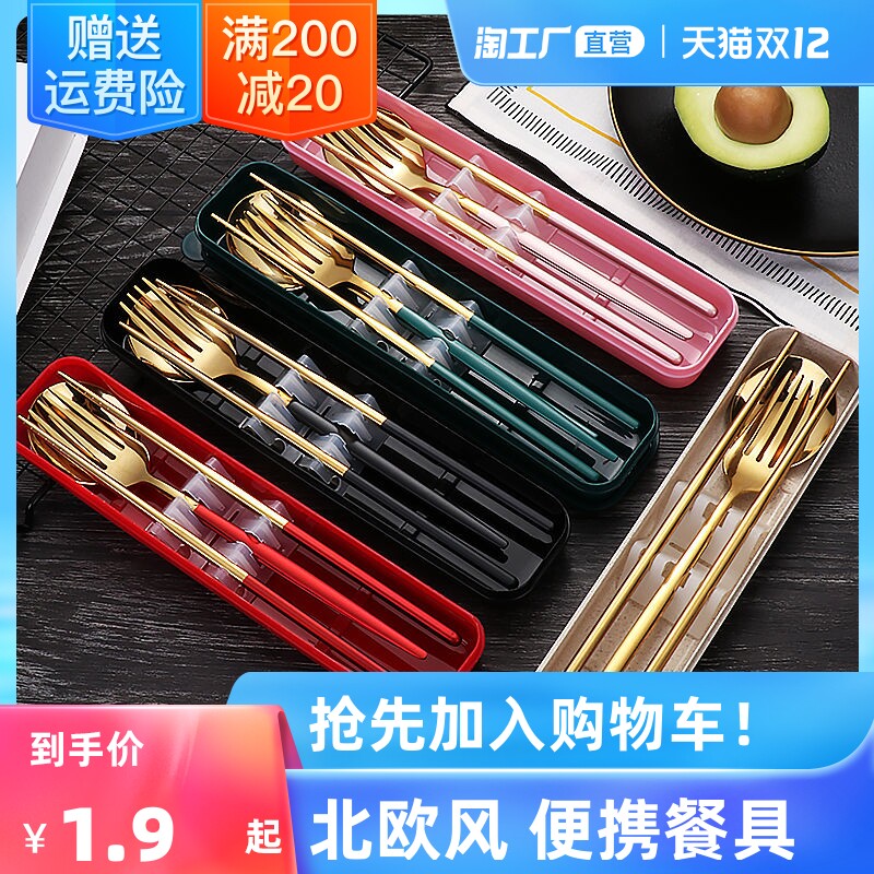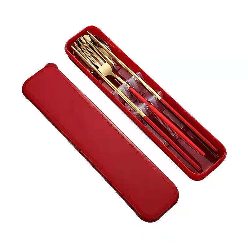Портативная посуда из нержавеющей стали, комплект, ложка, вилка, палочки для еды для школьников и студентов для путешествий, популярно в интернете, 3 предмета