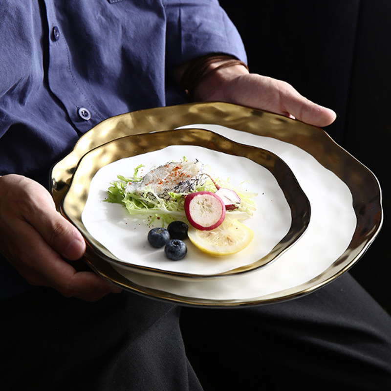 Керамический рисунок в стиле европейского в стиле золота -бортяне западные керамические быки платиновые фрукты плоские салаты для салата посуда домашние блюда домашние блюда