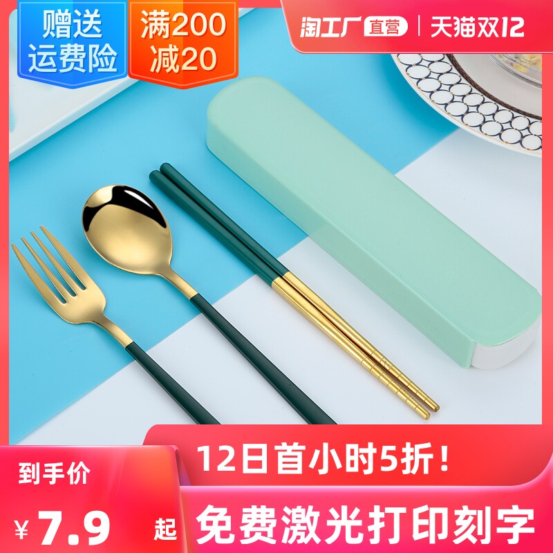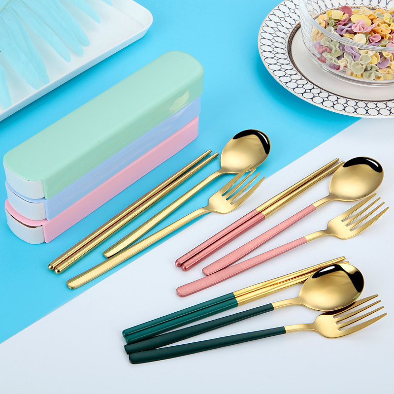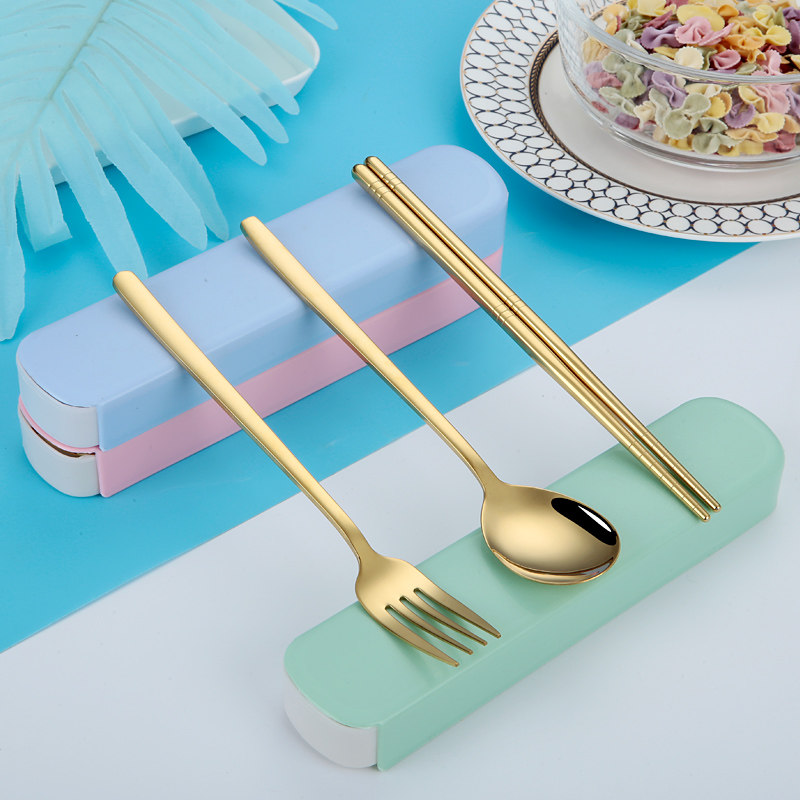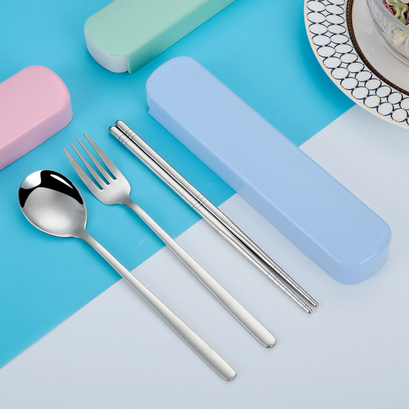 Корейская посуда из нержавеющей стали, портативный комплект, вилка для школьников и студентов, ложка, палочки для еды, нержавеющая сталь AISI 304, 3 предмета