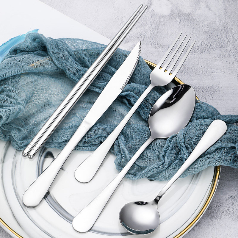 - № 1 стейк -вилка+заостренная ложка+18 -сантиметровый палочки для еды