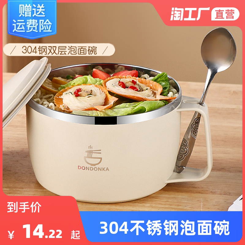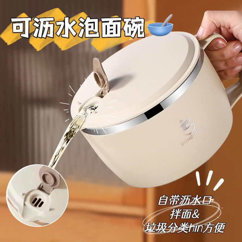 Мгновенная чаша с лапшой из нержавеющей стали с общежитием для общежития для лапши студентов, палочки для еды, чтобы поесть для личной посуды